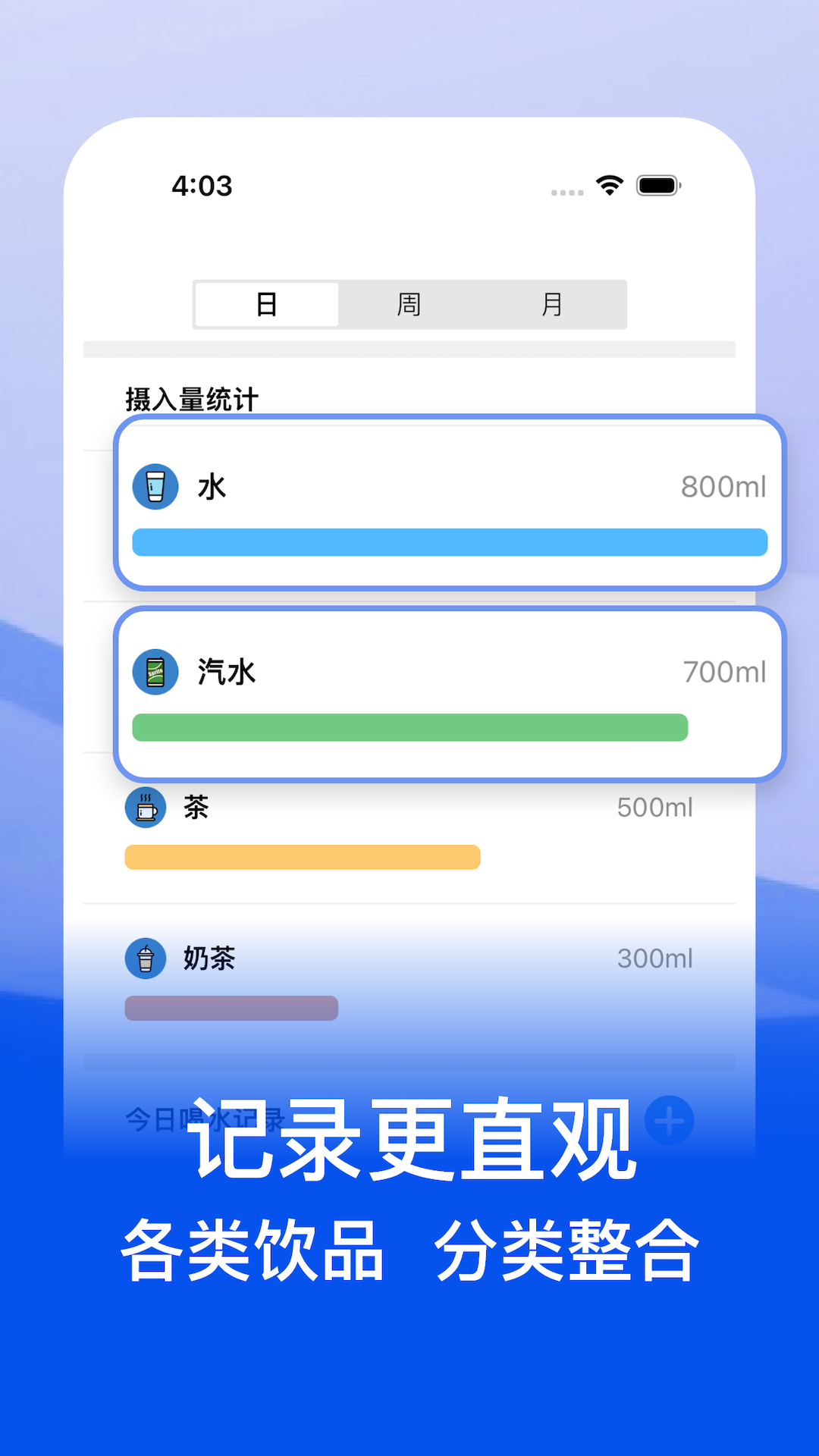以图表的形式直观地展示喝水摄入量的变化趋势。